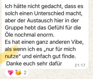 Ich kann die Testwoche von Michaela jedem, der sich für die ganzheitliche Wirkung von ätherischen Ölen interessiert, sehr ans Herz legen.